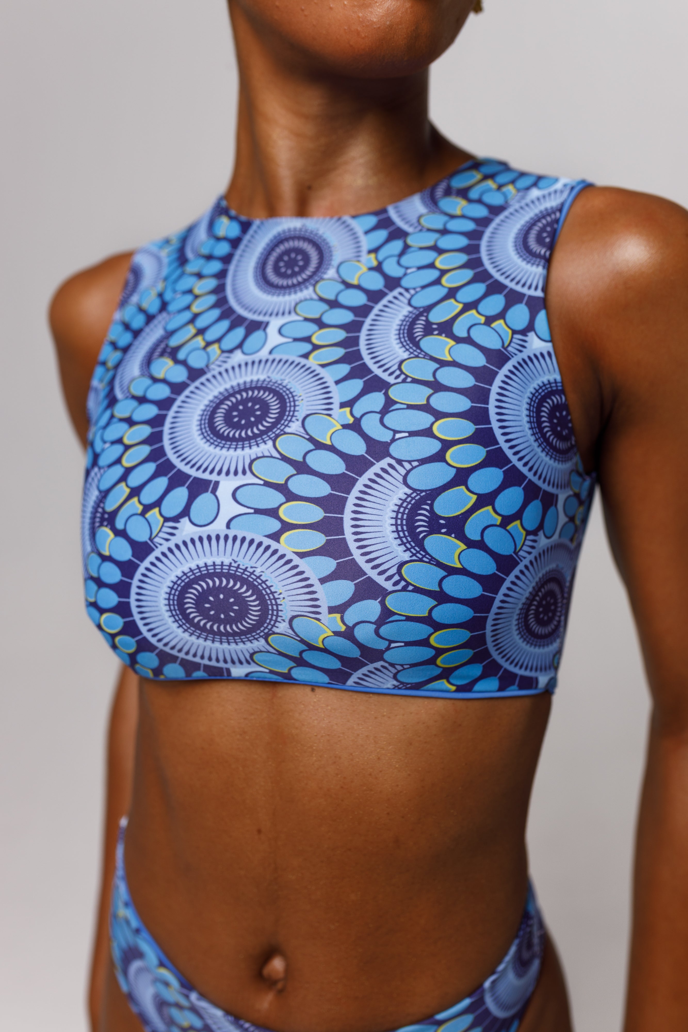 High Neck Bikini Top in our signature prints, sustainably crafted from recycled polyamide sourced from fishing nets.